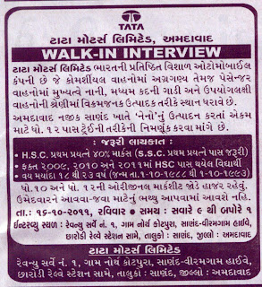એટેચ કરેલી ટાટા મોટર્સ લિમિટેડની જાહેરાત જ પર્યાપ્ત છે. જાહેરાતના લખાણની એક લાઇન